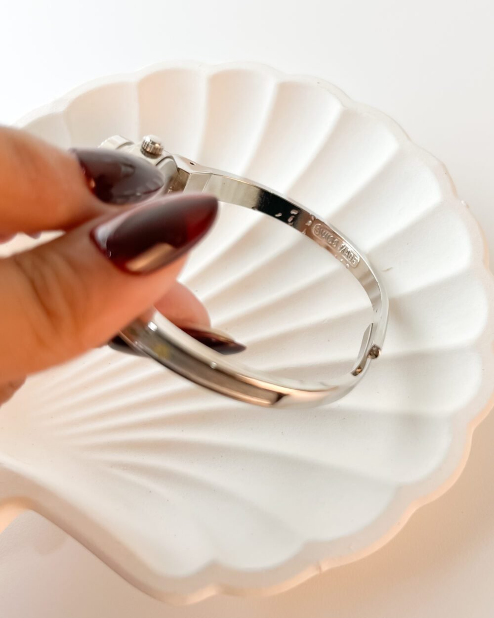 Case material: Silver-toned Rhodium Plated Alloy & Enamel