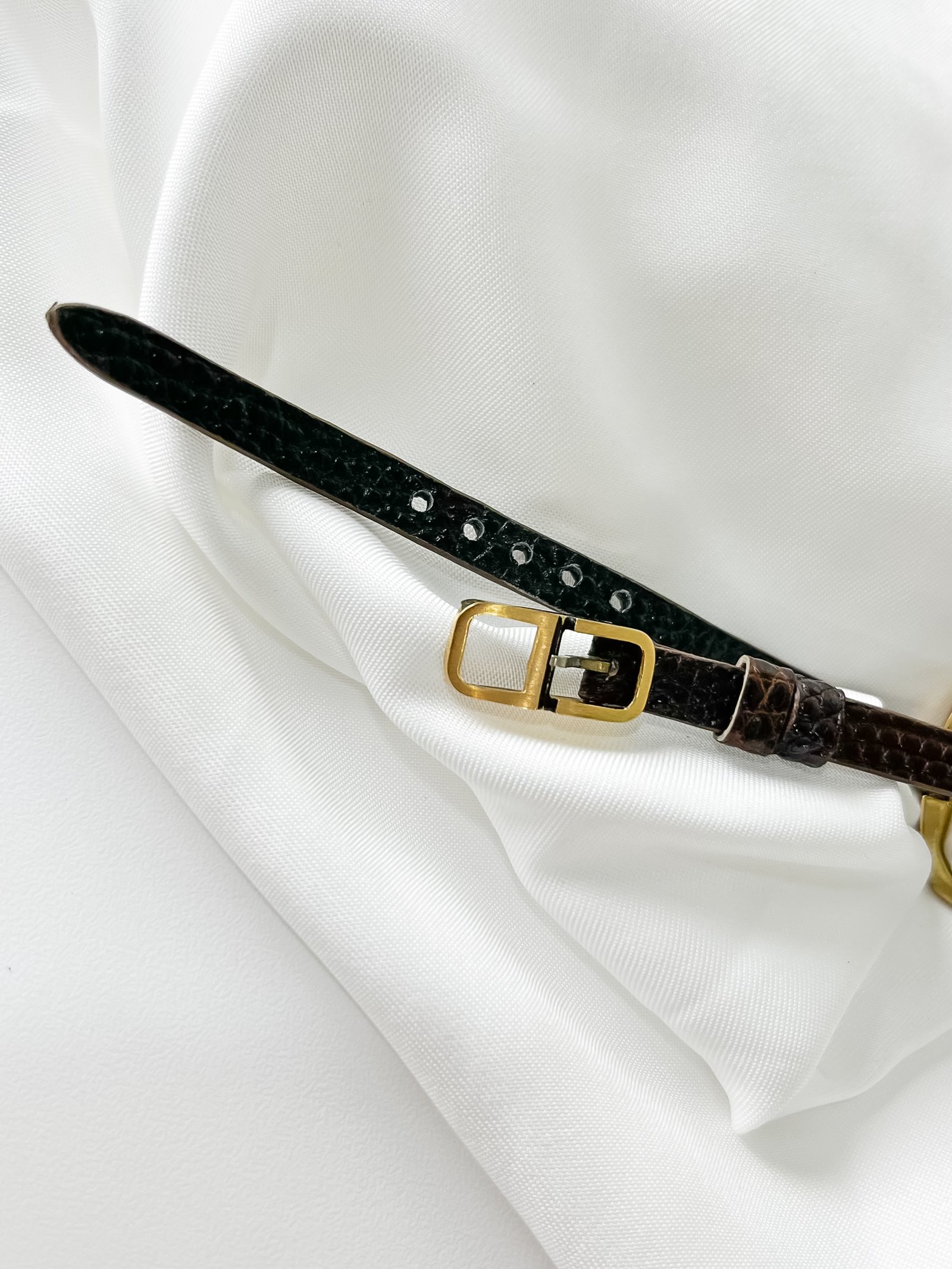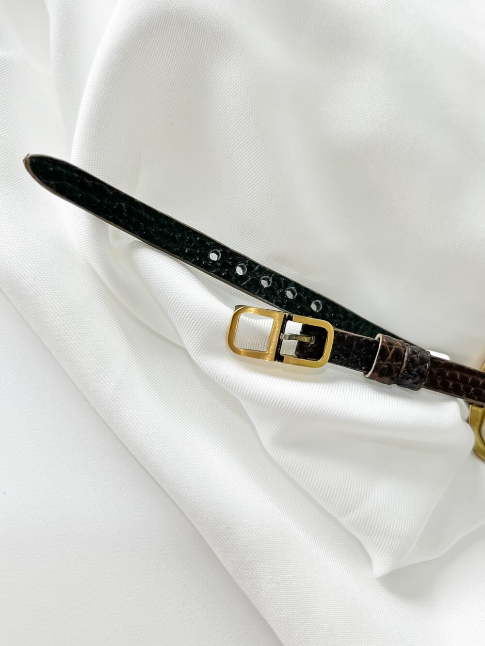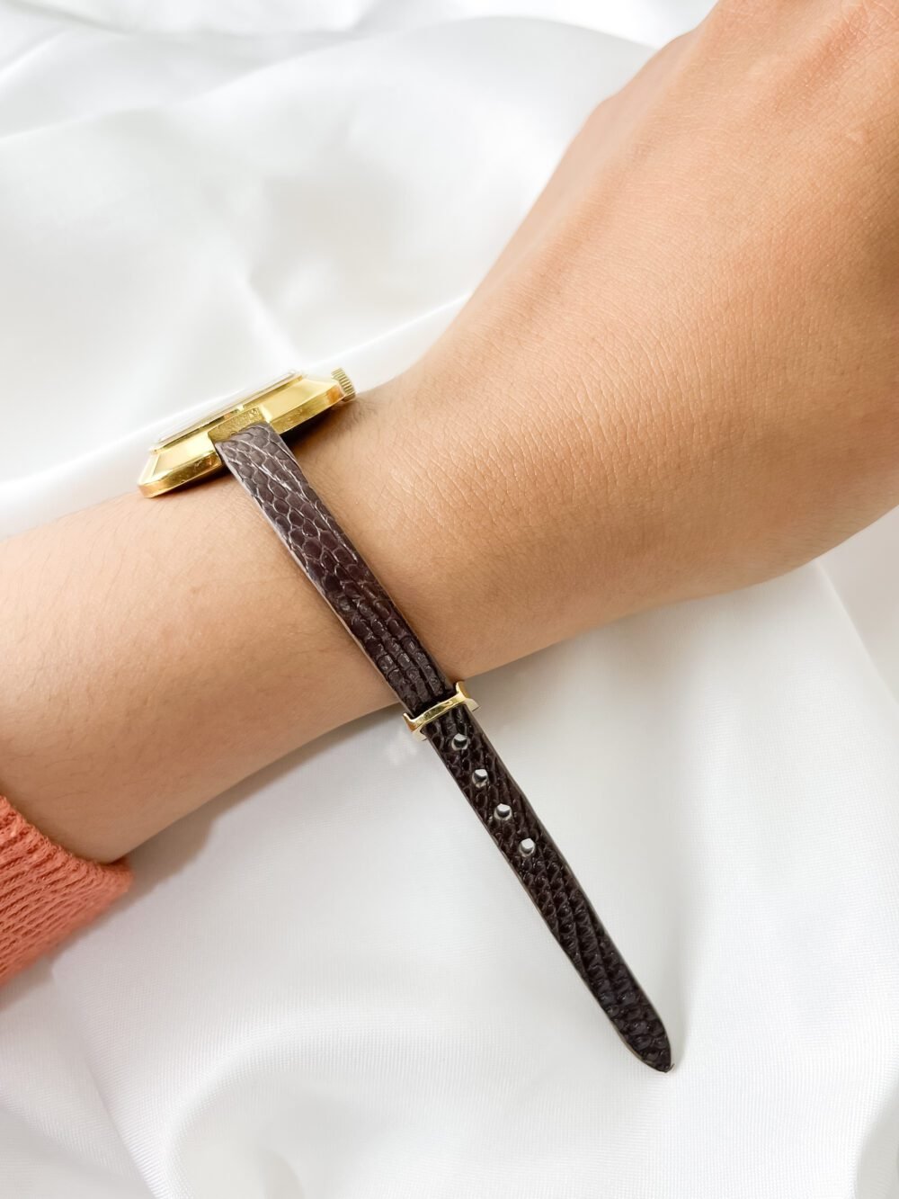 This piece originates from a period where Bulova bridged the gap between American heritage and the rigorous precision of the Alps. Housing a high-reliability Swiss Quartz movement, it reflects the brand’s late 20th-century focus on ultra-slim silhouettes that could function as both a dependable timekeeper and a singular piece of jewelry. The architectural integration of the 8mm bracelet into the wider 29mm case creates a dramatic, tapering profile that was a hallmark of 1990s formal design. Preserved in its original box, it stands as a tactile fragment of an era that prioritized a seamless, monochromatic aesthetic.