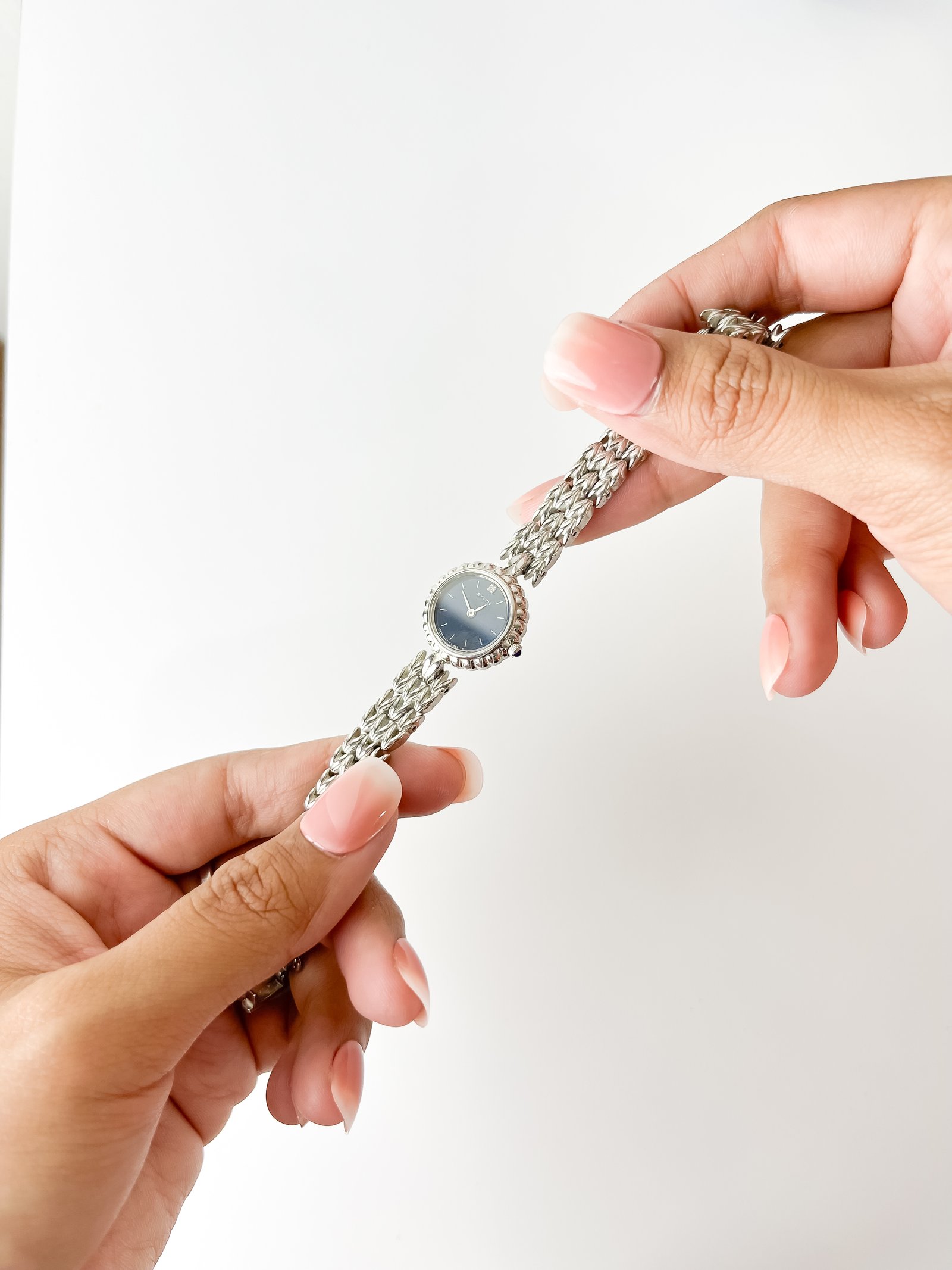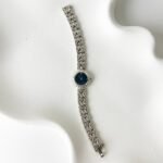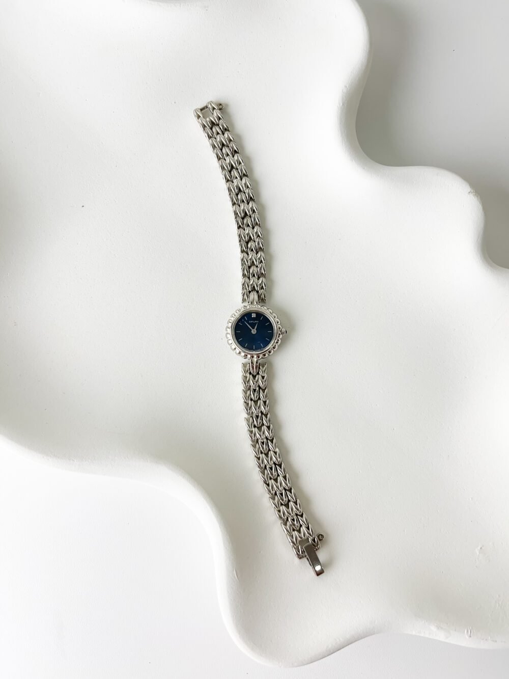 Named after the mythological spirits of the air, the Citizen ‘Sylph’ series was a tribute to weightless grace. At its core lies the high-grade Japanese Caliber 5420, a movement born from a late 20th-century obsession with absolute miniaturization. The braided link bracelet is a masterclass in textile-like flexibility, engineered to flow with the body’s natural contours during a time when Japan’s jewelry-watch craftsmanship was at its zenith. Finding a specimen in such preserved harmony, still accompanied by its original blue vault and guarantee papers, feels like discovering a forgotten secret from a more meticulous era.