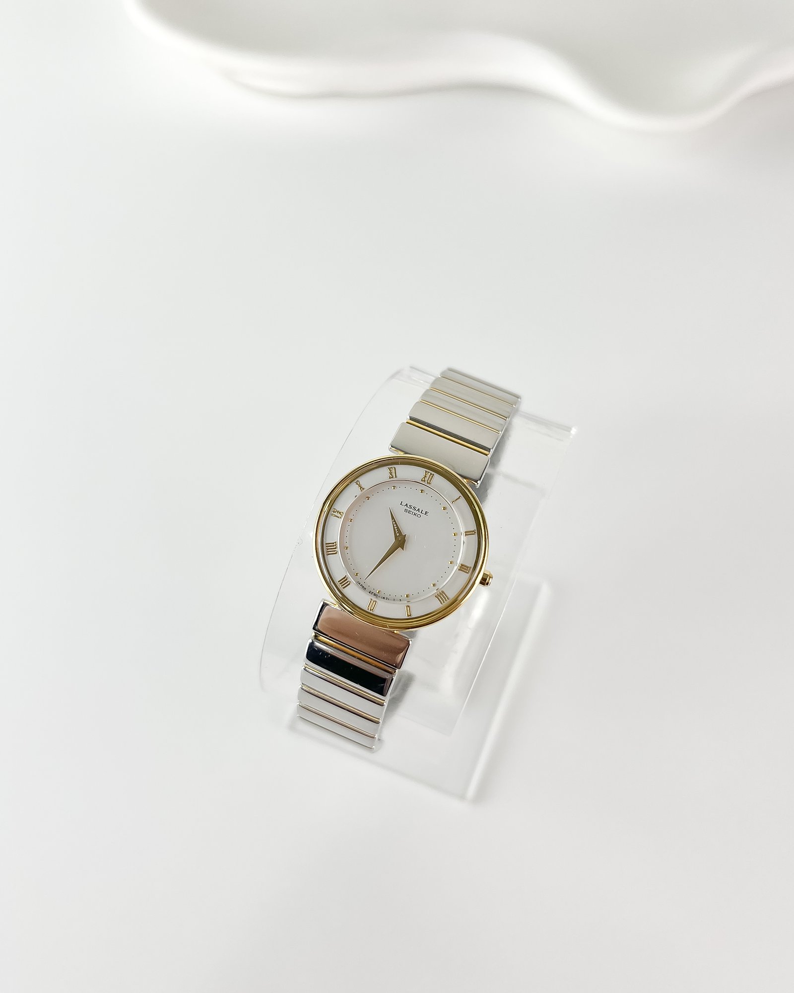 Born from the high-precision workshops of the late 1980s, this Lassale represents the peak of Seiko’s ultra-thin quartz era. Driven by the caliber 2F50, it is a functional relic of a time when the Suwa and Daini factories competed to create the world’s most slender profiles without sacrificing mechanical rigor. The integrated bracelet design, where the case flows seamlessly into the horizontal bar links, reflects the brand’s dedication to a unified, sculptural form. This piece is a masterclass in miniaturization, preserving a specific chapter of Japanese horology where technology was bent to serve the beauty of form.