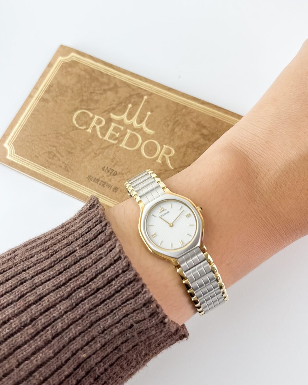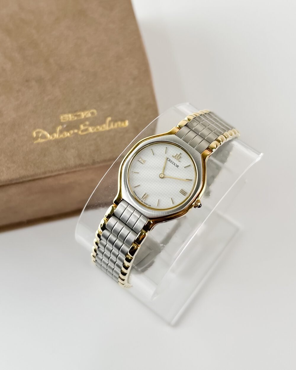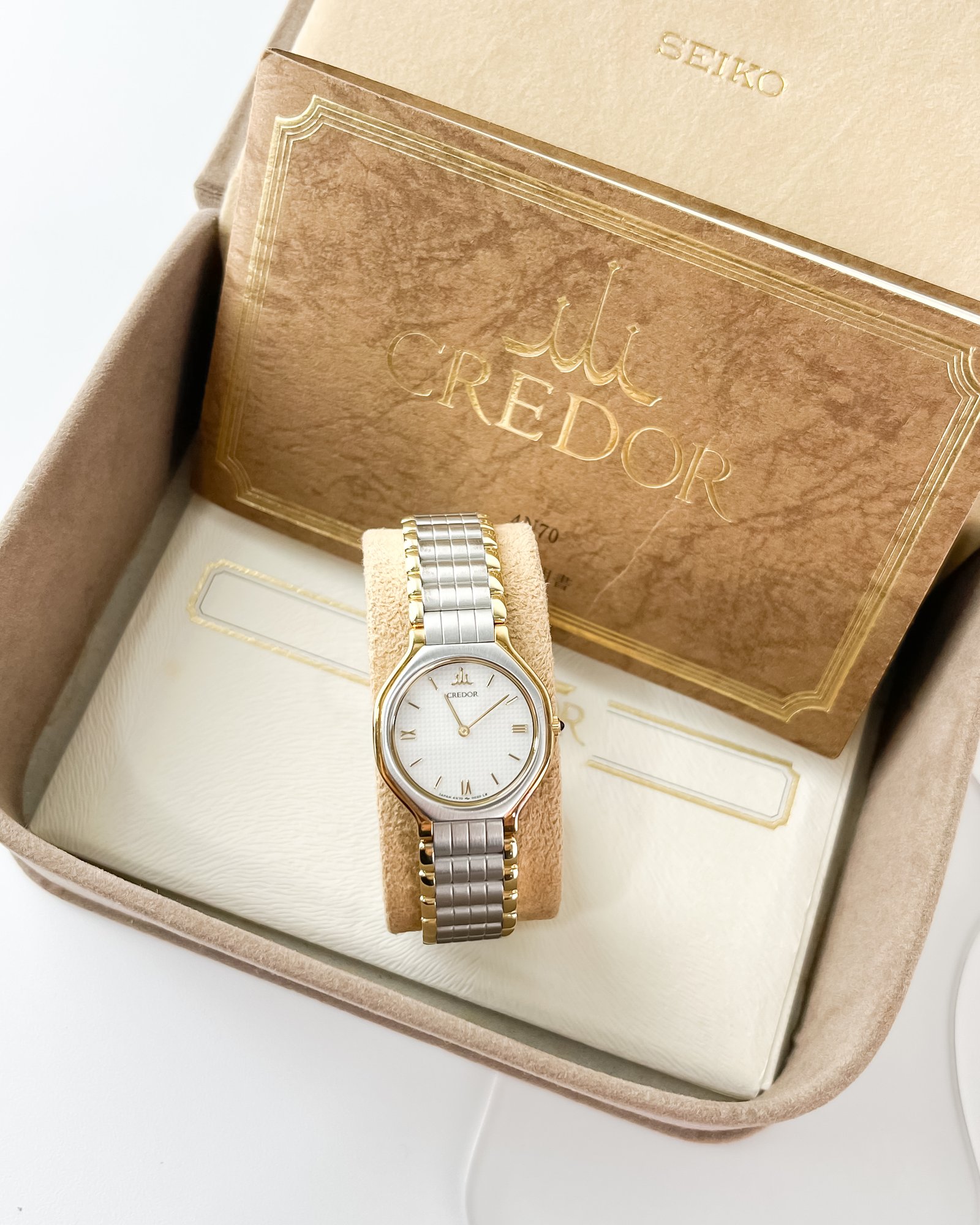 This specimen belongs to the prestigious Credor lineage, the pinnacle of Seiko’s luxury craftsmanship born from the high-end “Crêt d’Or” philosophy. Driven by the ultra-thin 4N70 high-accuracy caliber, this movement represents a golden era of miniaturization where the Suwa factory pushed the boundaries of quartz precision to rival the finest horological houses in the world. The case, a seamless blend of brushed stainless steel and 18kt solid gold accents, is a functional testament to a time when Seiko’s top-tier artisans focused on creating relics that are as much fine jewelry as they are precise timekeepers.