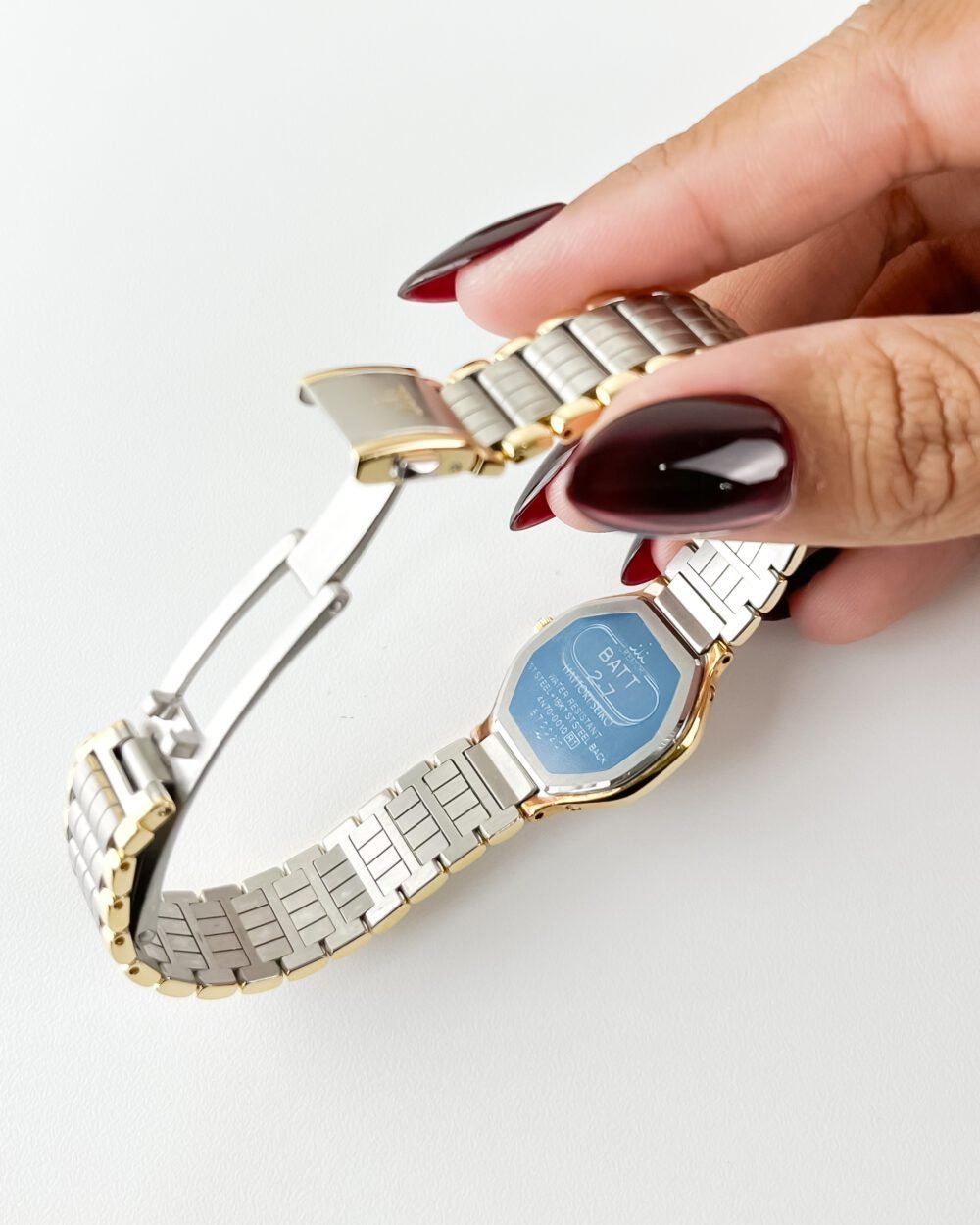 Case material: Stainless Steel & 18kt Solid Gold Accents
