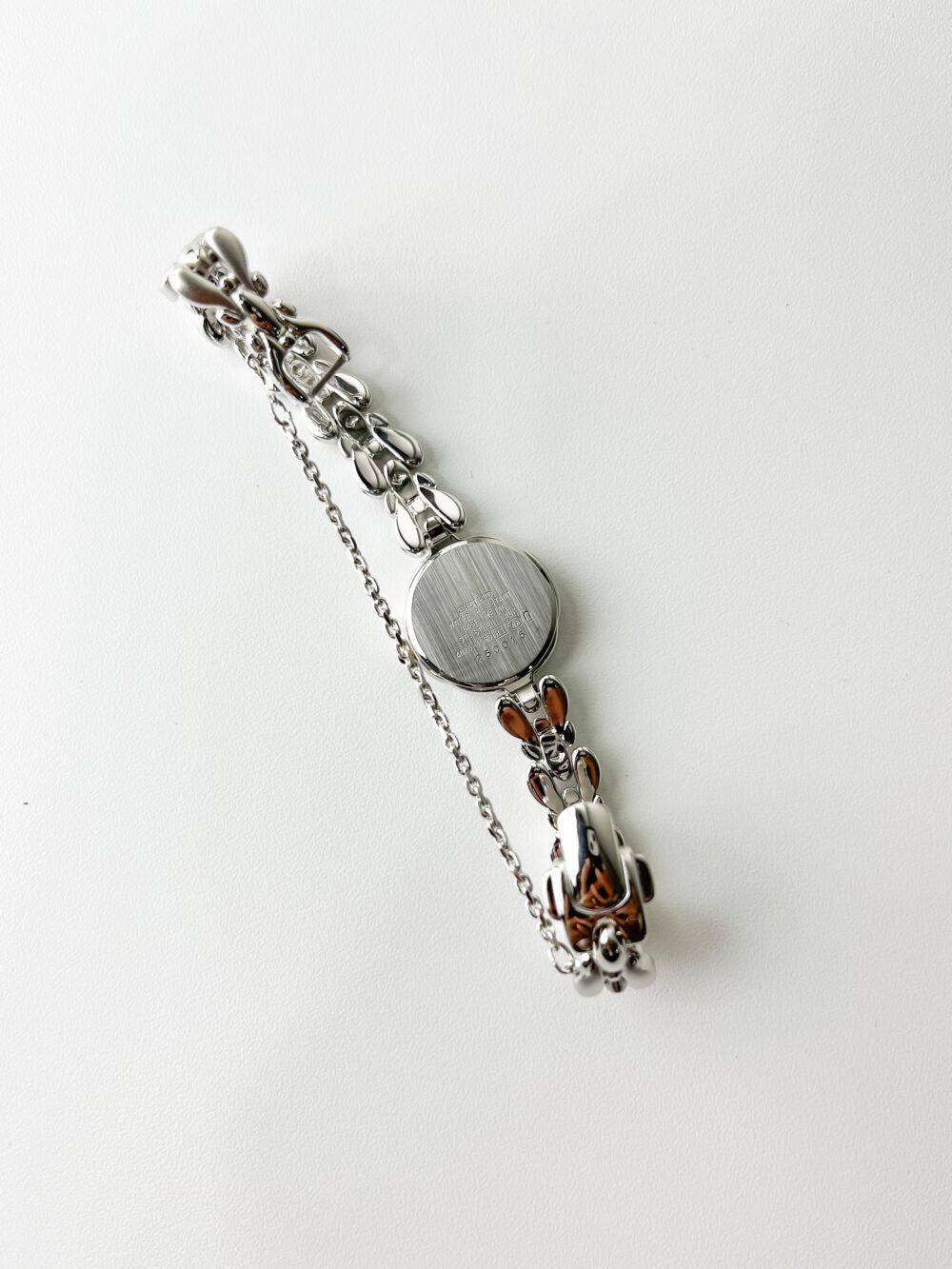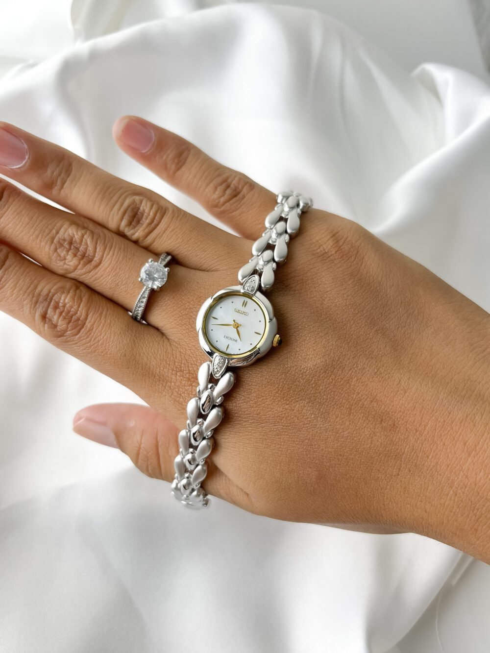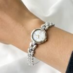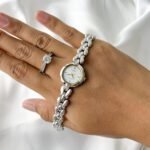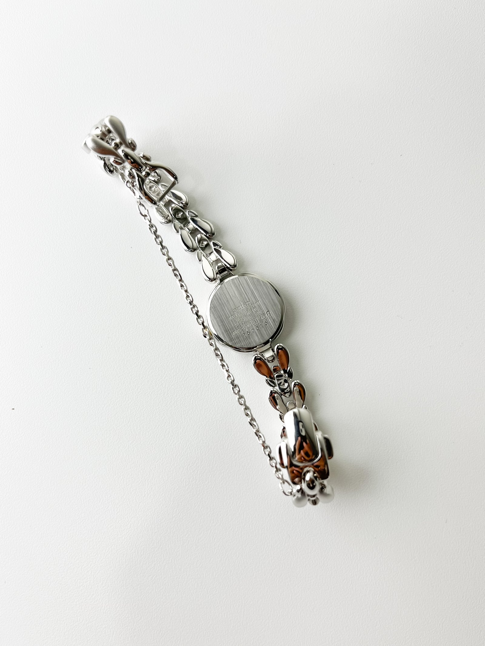 This petite Seiko Exceline wraps the wrist like a shimmering silver vine adorned with frozen dewdrops. It is more than a timepiece; it is a sculptural poem in stainless steel, designed to catch the light with every graceful movement of the hand. With its unique scalloped case and organic, teardrop-shaped links, it feels refined yet quietly sweet—a delicate masterpiece that blurs the line between high-precision horology and fine jewelry.