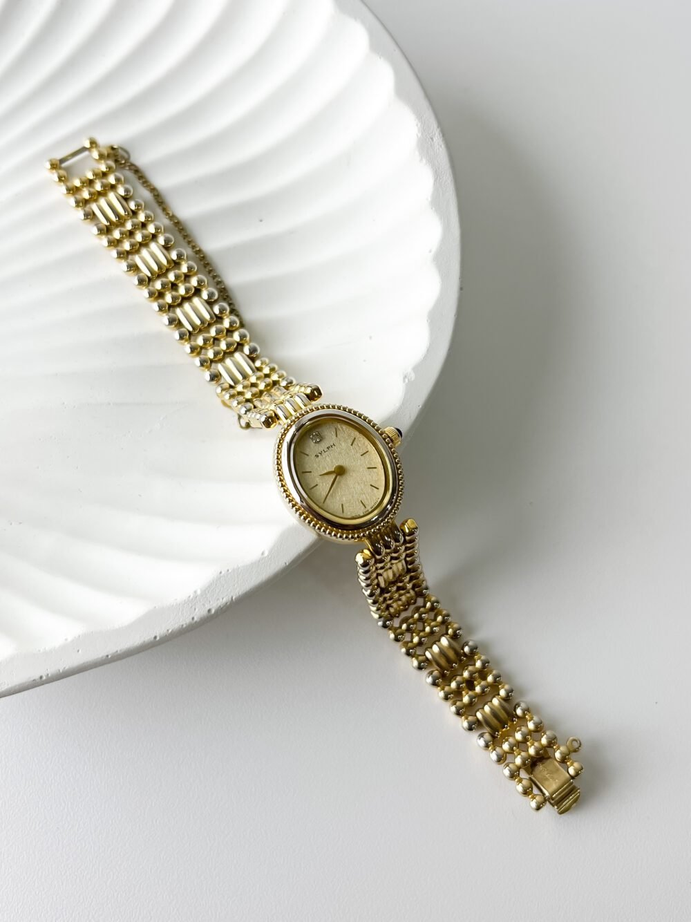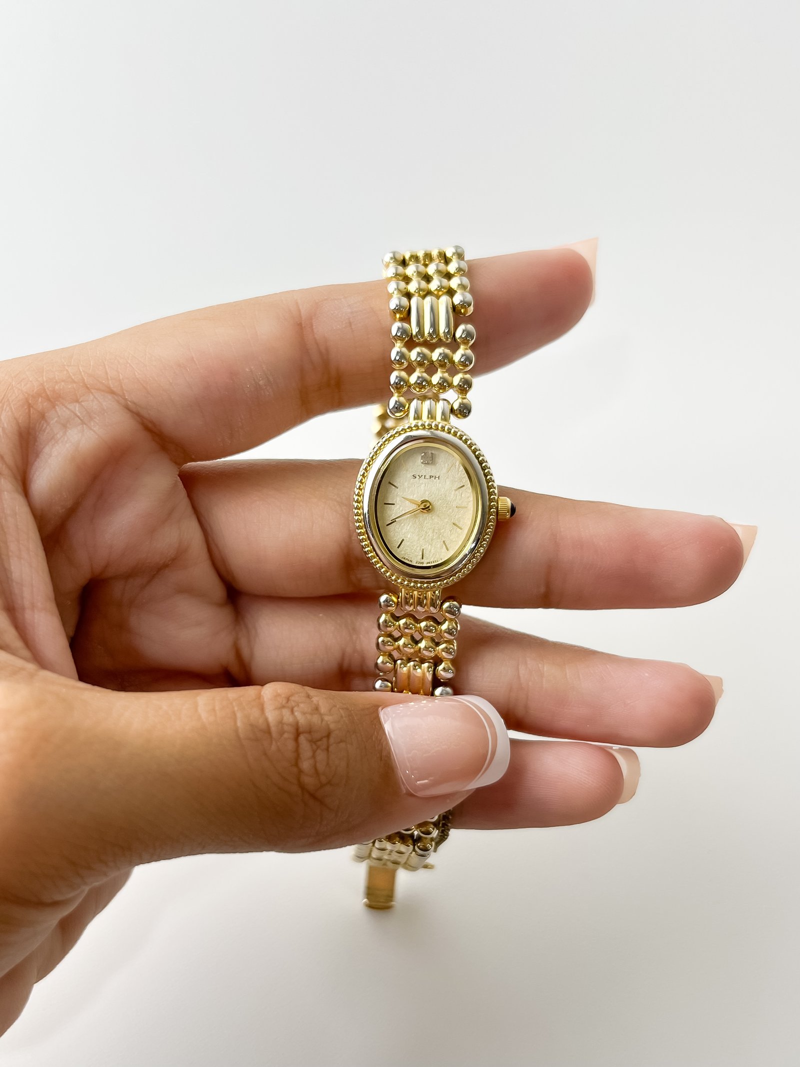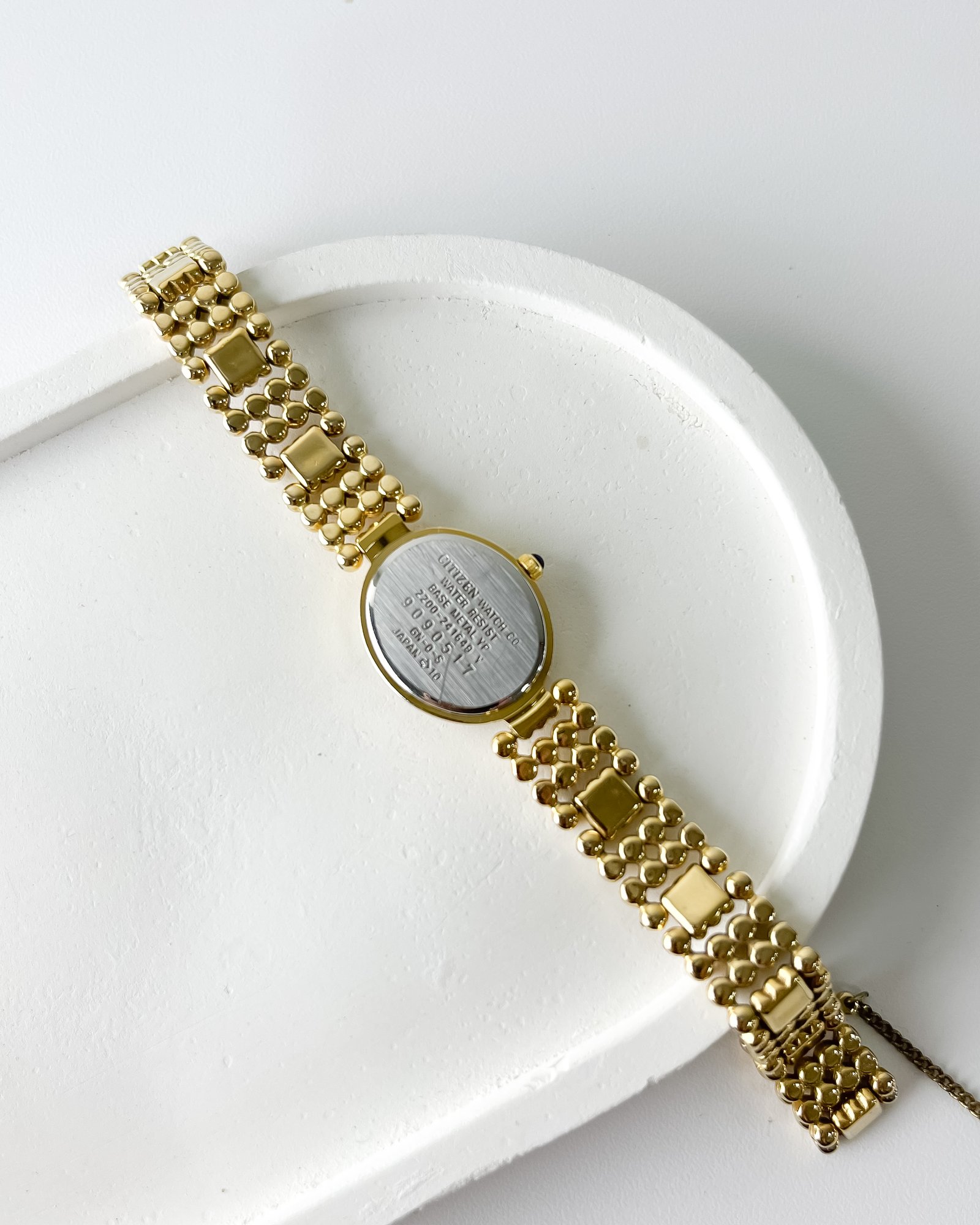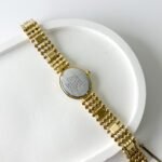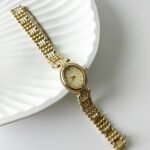 Beneath the petite, oval exterior lies the technical prowess of the Citizen 2200 caliber, a Japan-made quartz movement celebrated for its ultra-thin profile and endurance. This particular “Sylph” model emerged from an era when Citizen pushed for jewelry-grade finishing, utilizing a base metal YP (yellow plated) case that mimics the richness of solid gold. The design features a delicate safety chain—a hallmark of high-end vintage cocktail watches—ensuring that this piece of horological history remains securely tethered to its wearer.