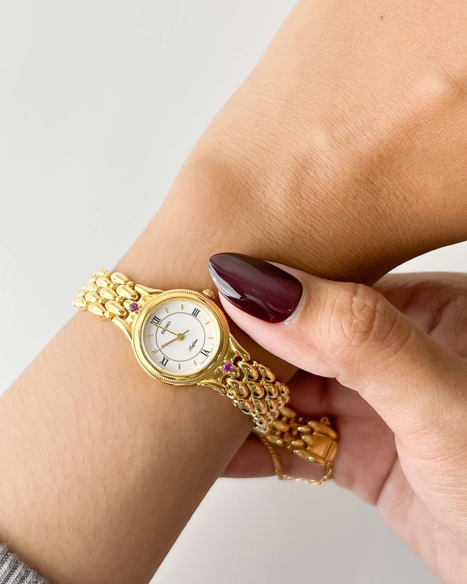 Case material: Gold-Plated Base Metal with Ruby-colored Accents
