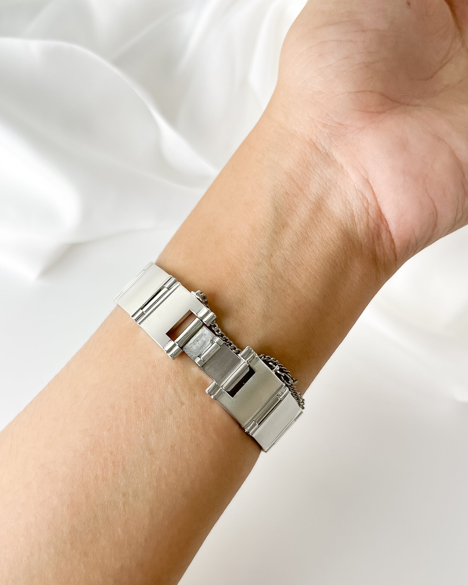 There is a supple, textile-like fluidity to the bracelet that feels remarkably like a second skin of woven Aurum. As the wrist moves, the fine interlocking mesh catches the Late Sun, breaking the light into soft, honeyed gradients that flow seamlessly into the rectangular case. The dial, a quiet field of champagne gold, is sheltered beneath a low-profile crystal, creating a silhouette so slim it feels integrated into the very pulse of the wearer rather than merely resting upon it.
