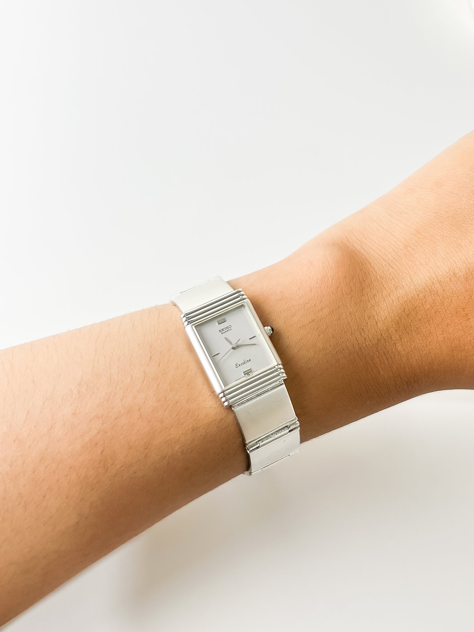 This Seiko 7321-5120 is a physical record of the Suwa factory’s obsession with ultra-thin silhouettes during the mid-1980s. By utilizing the 7321 quartz movement, Seiko was able to achieve a remarkable 5mm thickness without sacrificing the robust reliability for which the era is known. The architectural transition from the 18mm case to the wide 14mm bracelet reflects a design philosophy that favored a continuous, cuff-like appearance. To find this artifact preserved with its original box is a rare encounter with a decade that mastered the art of turning industrial metal into a golden, shimmering tapestry.