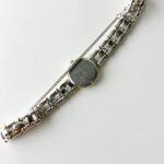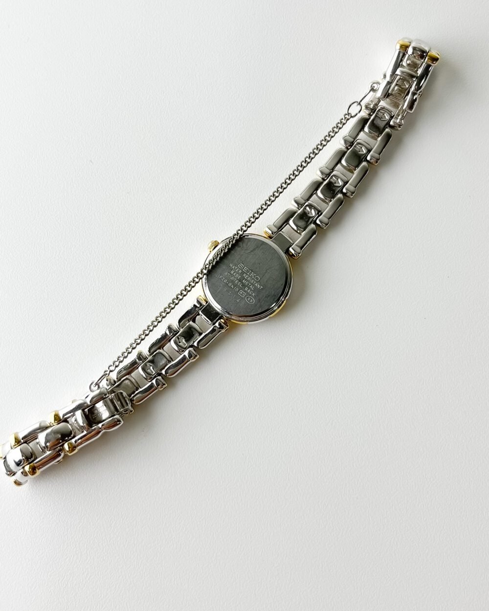 Hailing from the Daini factory lineage of ultra-compact quartz, this Seiko Tissé utilizes the refined 1F20 movement—a caliber specifically engineered to allow for jewelry-first dimensions without sacrificing technical precision. Produced during the early 1990s, the Tissé line represents Seiko’s dedication to high-tier boutique aesthetics, featuring a delicate safety chain—a hallmark of formal cocktail watches designed for the Japanese domestic market. The case, with its distinctive “coin-edge” bezel and integrated lugs, showcases a level of miniature engineering that bridges the gap between functional horology and atmospheric jewelry design.